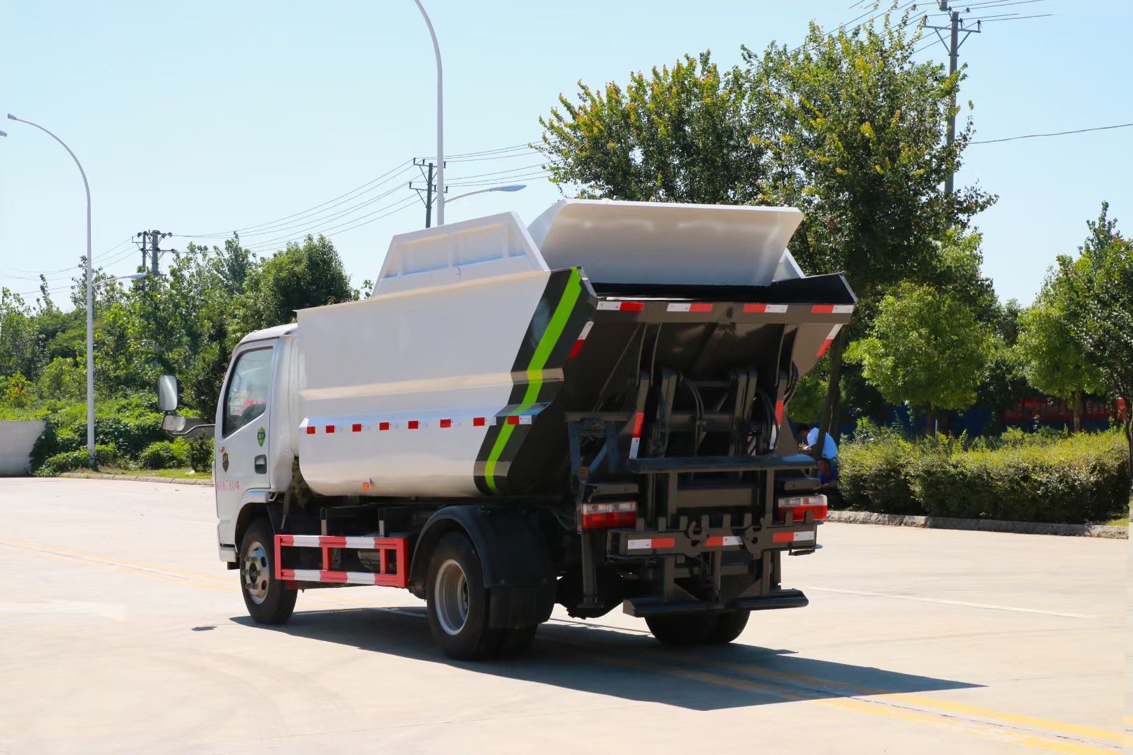 1、密封环保性:采用独特的高位倾翻的全封闭垃圾箱结构,杜绝了垃圾和污水沿途洒漏的现象,避免了运输过程中的二次污染。